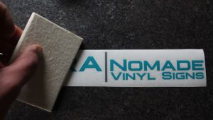 Slowly lower the sticker onto the surface and rub it in place firmly with a squeegee or credit card.